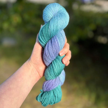 A rare phenomenon in yarn form, Exaltandire shimmers between hues like shifting light on a jewel, channelling transformation, balance, and quiet strength. It is inspired by June's birthstone.