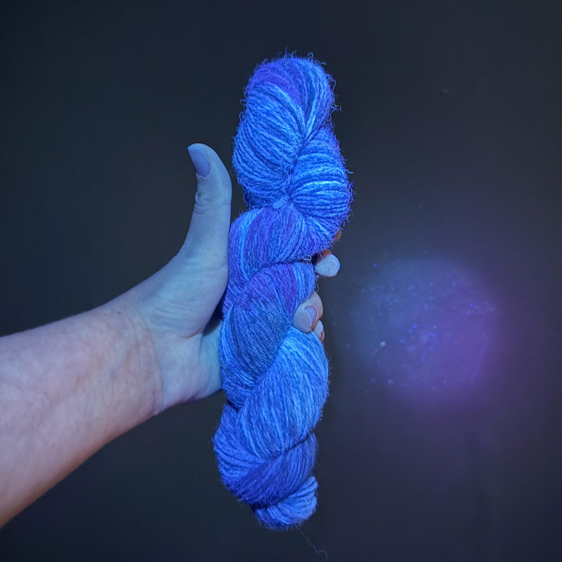 Part of The Final Curation, a new collection taking inspiration from gemstones. Drawing on my great-uncle's life long career in geology as well as my own decade working in museums, the colourways are rich and cosy, precious and yet worth showing off. Oh, and did I mention the dye is UV reactive?